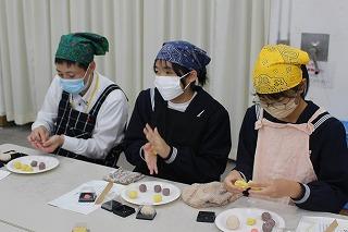 10月14日(火)の5・6限目、6月に引き続き、小松市の行松旭松堂から行松さんご夫婦が来校され、和菓子作り体験が行われました。