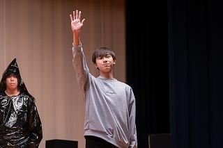 大峰先生からは「体の重心の位置」「動作とセリフのタイミング」「セリフは前の人の語尾を捉えて話す」など、具体的にご指導いただきました。生徒は先生の言葉を熱心に聞きながら、1つ1つ丁寧に実践し、自分のものにしようと奮闘していました。練習終盤の劇は今までとは明らかに変わり、見ている人の心を動かすようなものになりつつありました!