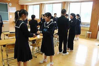 10月1日に(水)に、後期生徒会役員任命式が行われました。役員選挙で選出された生徒会長と副会長が呼名され、校長先生から任命書が手渡されました。その後、全校生徒と先生方が見守る中で後期に向けた抱負と決意が語られました。