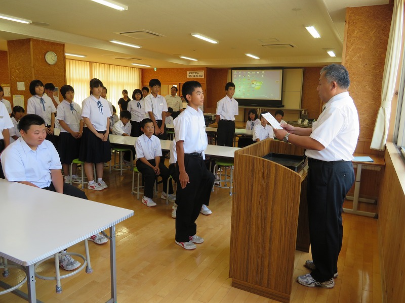 意見発表では、3年生の中口さんが修学旅行で学んだことを