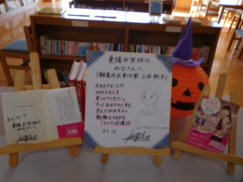 サイン入りのデビュー作「金沢 洋食屋 ななかまど物語」と色紙を贈呈していただきました。