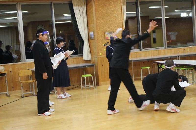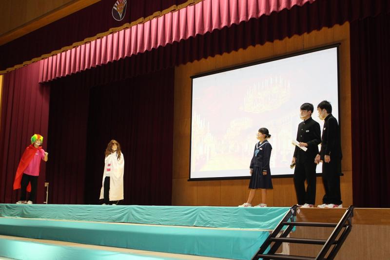 保護者、地域の方々に感謝の気持ちを伝えようと、演劇、書道パフォーマンス、合唱、