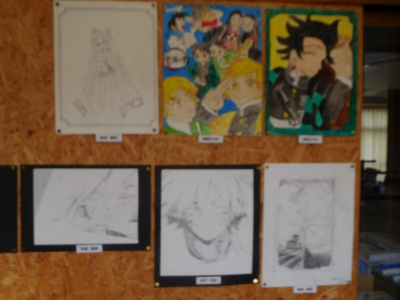 文化部の作品や図書室等、校内は子どもたちの作品掲示でいっぱいです。