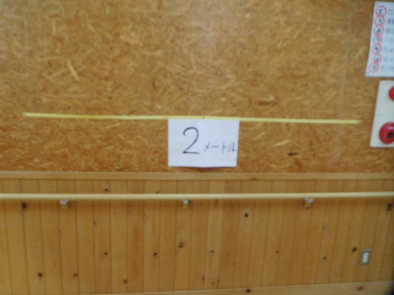 体育館のドアには、鳥の侵入を防ぐテープ。廊下には、文化部の活動作品。