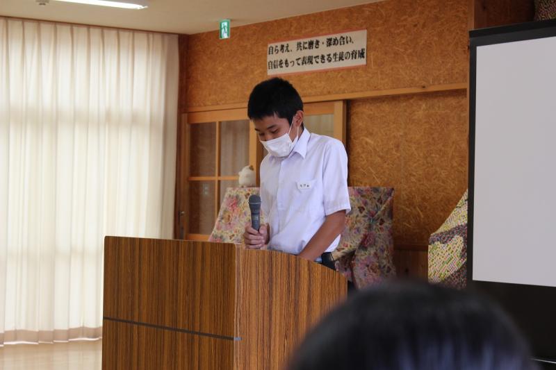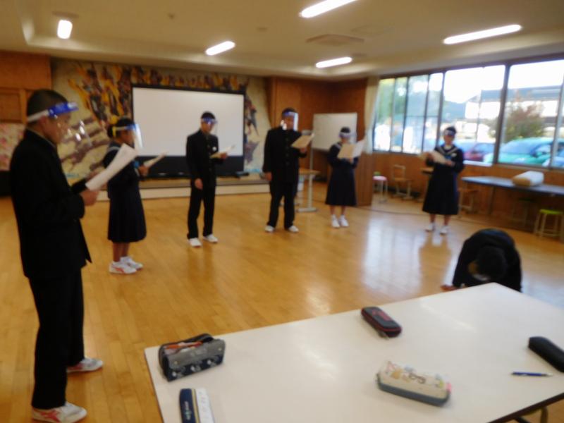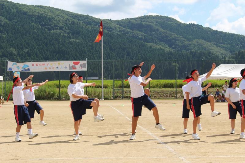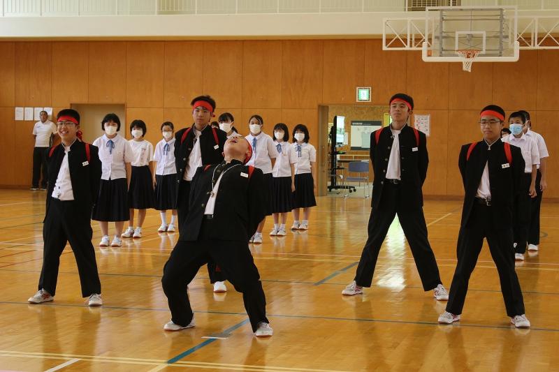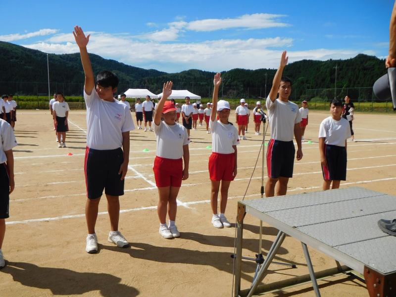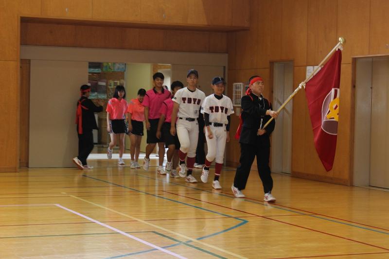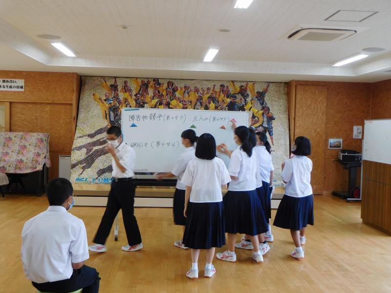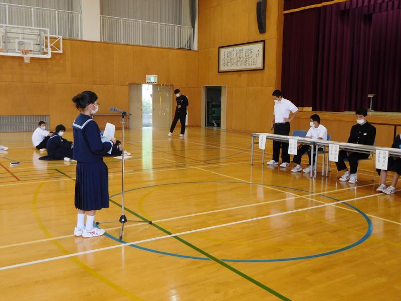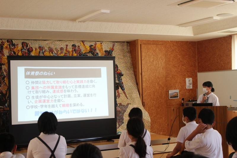 中学3年生が中心に、スローガン、種目、赤団・青団のメンバーの発表が行われ、