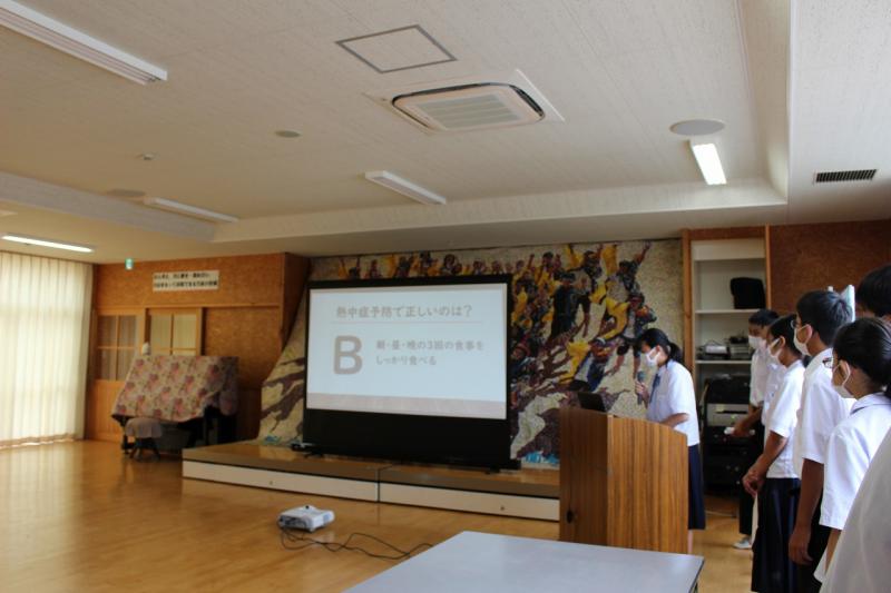 保健室前には、毎日、熱中症情報や生徒へのメッセージを掲示しています。