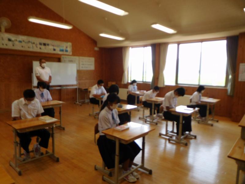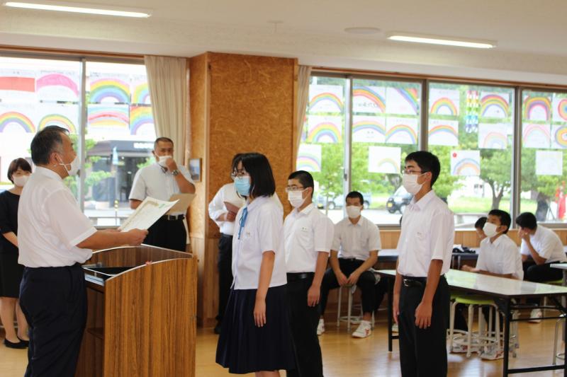 2学期の中間テストの成績優秀賞と努力賞の表彰式を行いました。