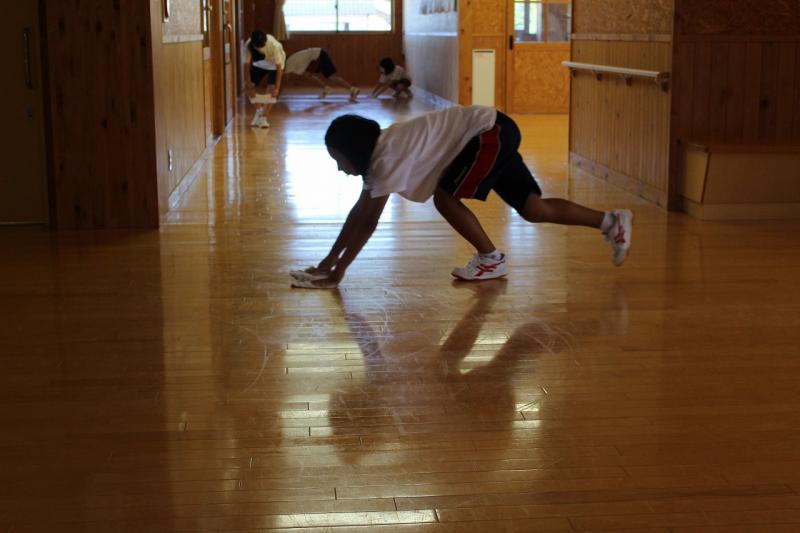 あちこちから、床をぞうきんがけするキュキュキュという音が。