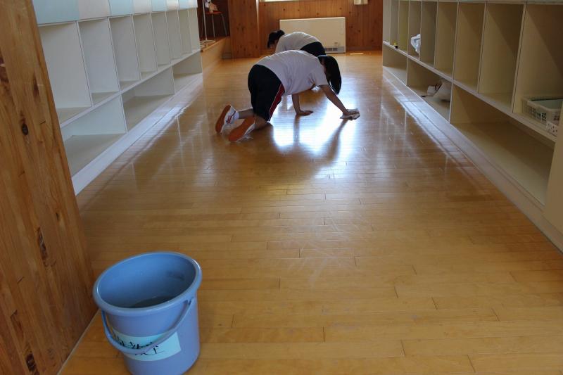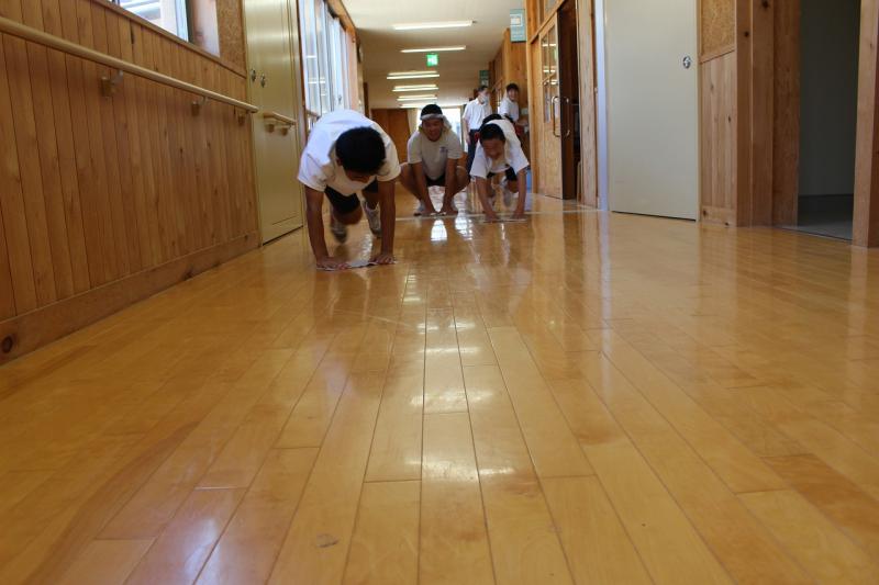 保健・美化委員会の企画で、校舎内を水拭きしました。