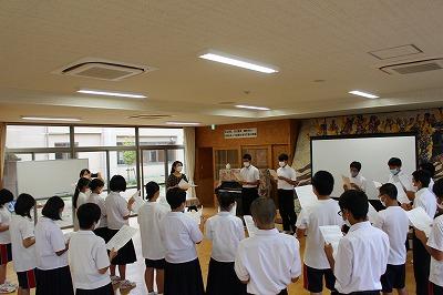 9月5日(土)に開催予定の体育祭オリエンテーションの結団式を、小中合同で行いました。