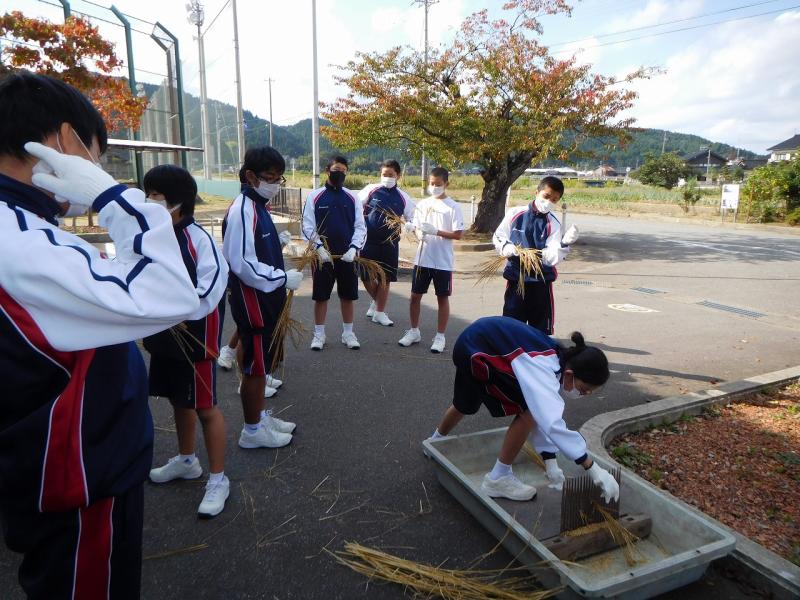 地域の向さんのご協力で、1年生が総合で千歯こきの体験をしました。ご指導ありがとうございました。