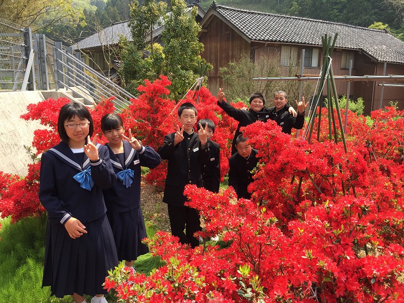 1日(火)に一年生が町野の広江先生宅のきりしまツツジガーデンを