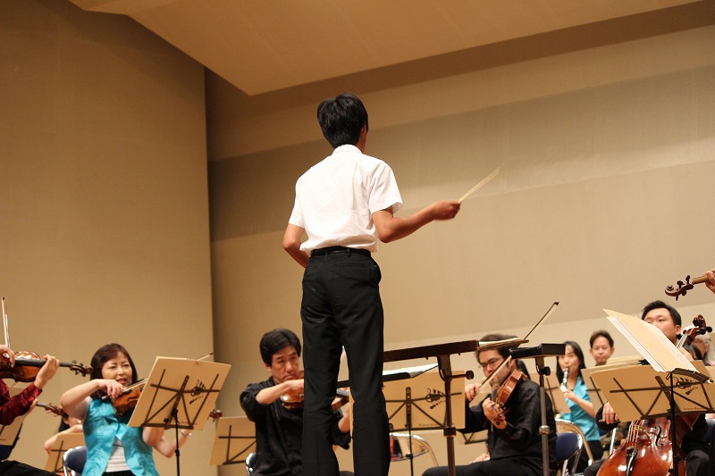 「指揮者を体験してみよう」コーナーもあり、生徒会長の瀬野君がよく頑張って