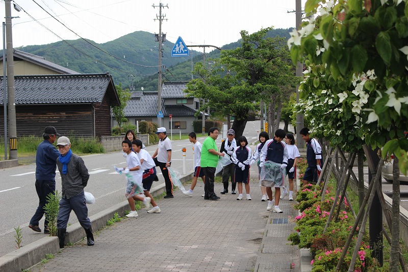 2年生が景観保全活動を尾山地区と東大野地区の周辺農道のゴミ拾いを