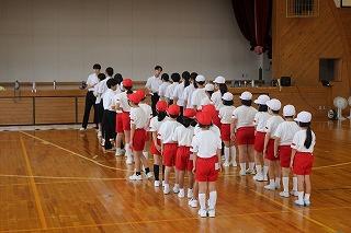 中学生は小学生の後ろに立って、一緒に応援をしていました。両団とも大きな声で「フレフレコール」などの応援や「ゴーゴーゴー」を歌いました!結果は閉会式で発表のため、子ども達は最後までドキドキでした!