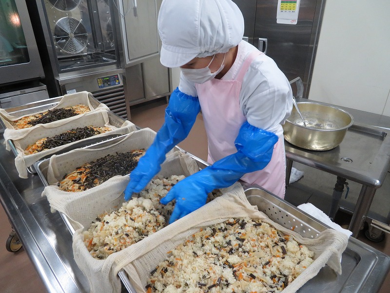 今日は、たこやごぼう、切り干し大根など噛み応えのある食材を