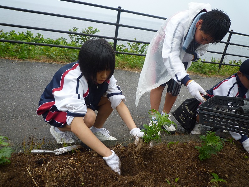 6月25日(日)、一年生の生徒がマリーゴールドの花植えを行いました。