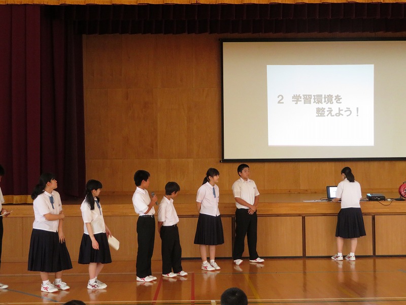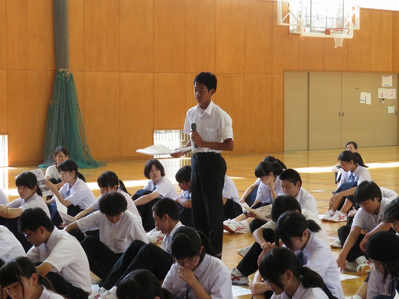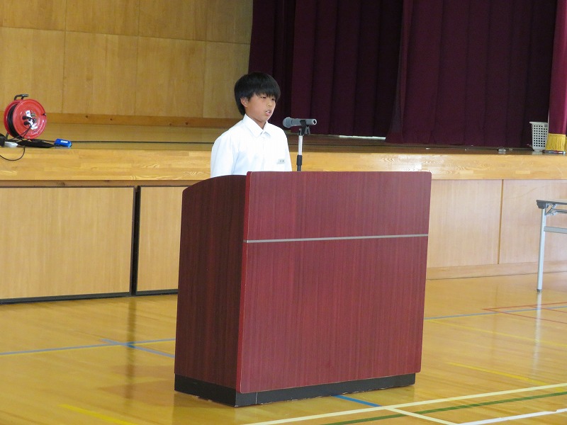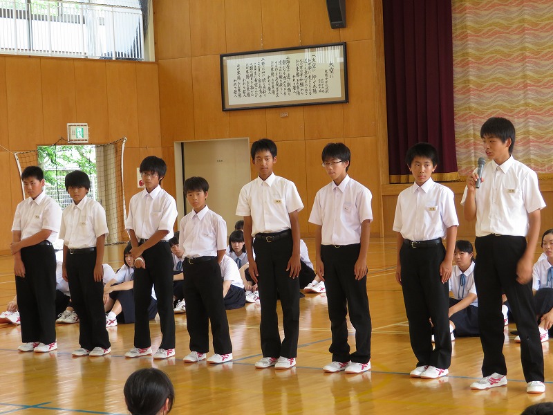 また、意見発表では、一年生の大宮さんが「一学期を振り返って」というテーマで
