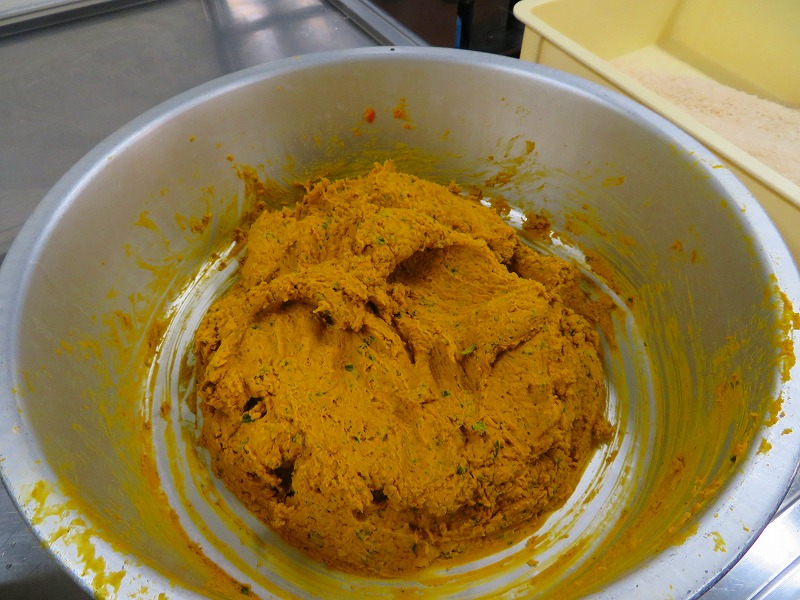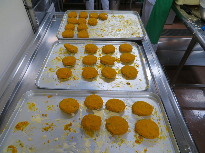 今日はハロウィンということで、給食でもかぼちゃコロッケを作り、