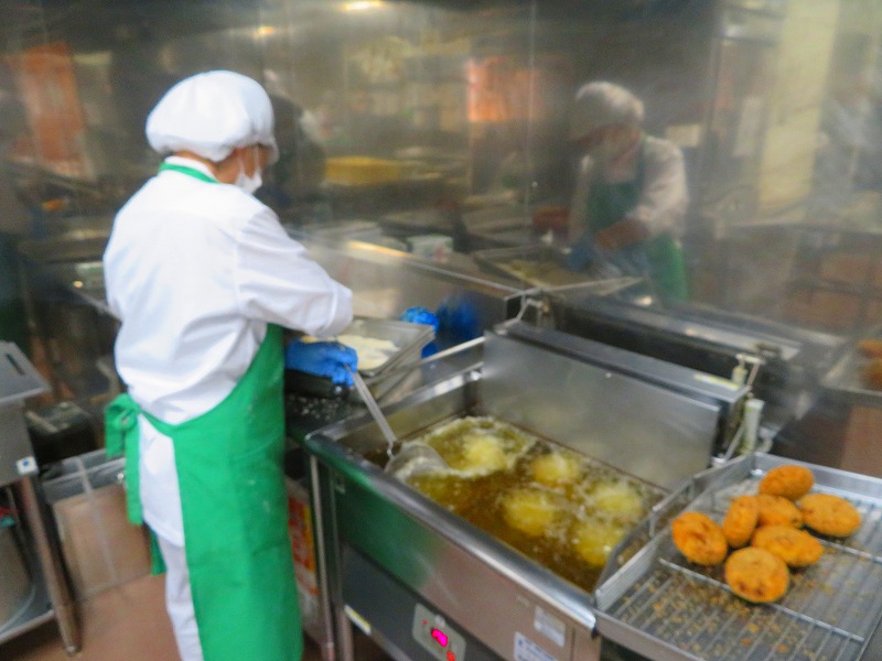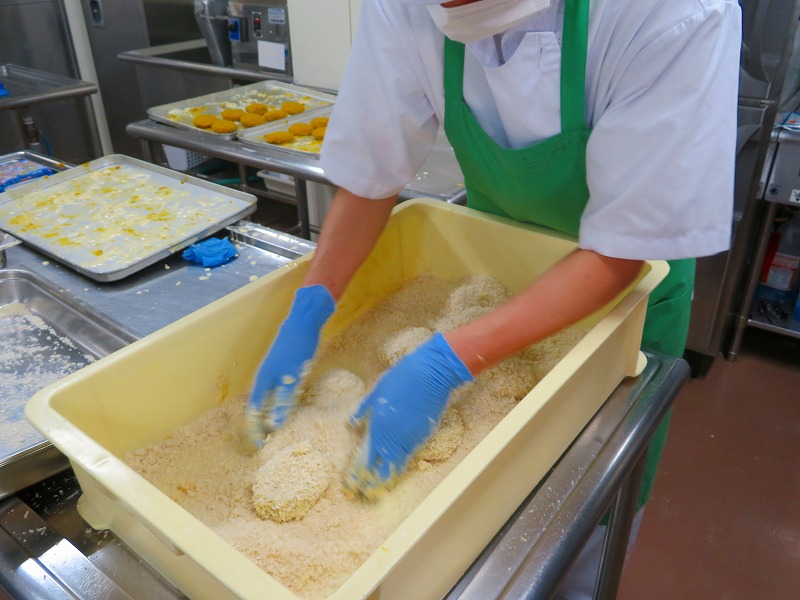 調理員さんが言うには、コロッケをおいしく揚げるコツは、パン粉をしっ