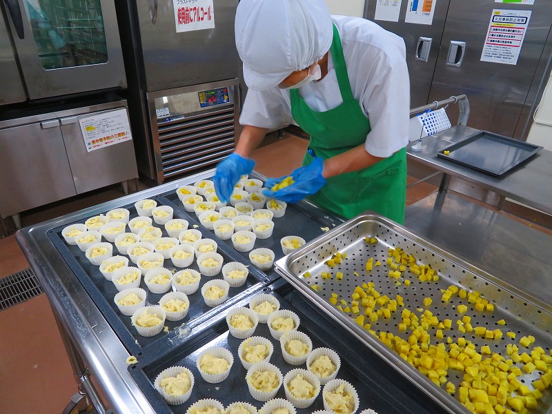 今日も文化部のさつまいもを使わせていただき、カップケーキを