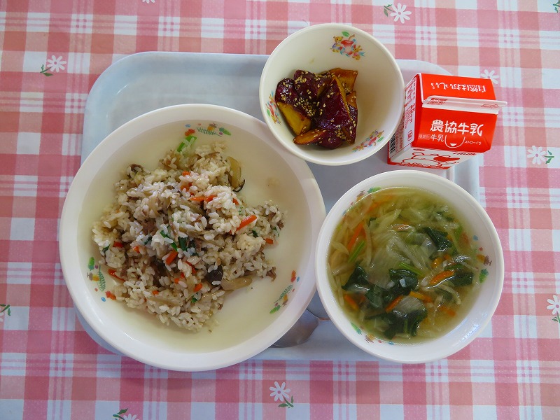今日は、里いも・きのこ・れんこん・ごぼうなど秋を感じられる献立でし