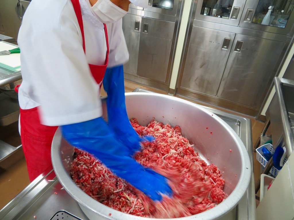 パンにはさむので、いつものハンバーグよりも平らに成形するのになかなか