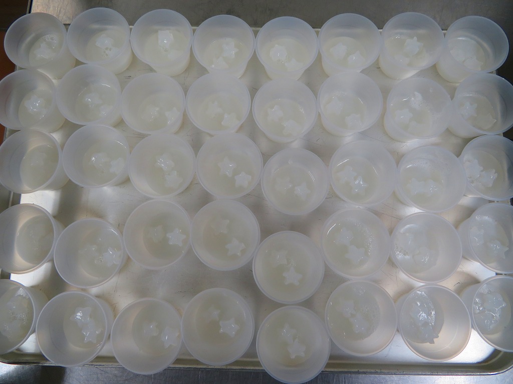 まずカルピスゼリーを作り、固まったら星形のナタデココをのせて、