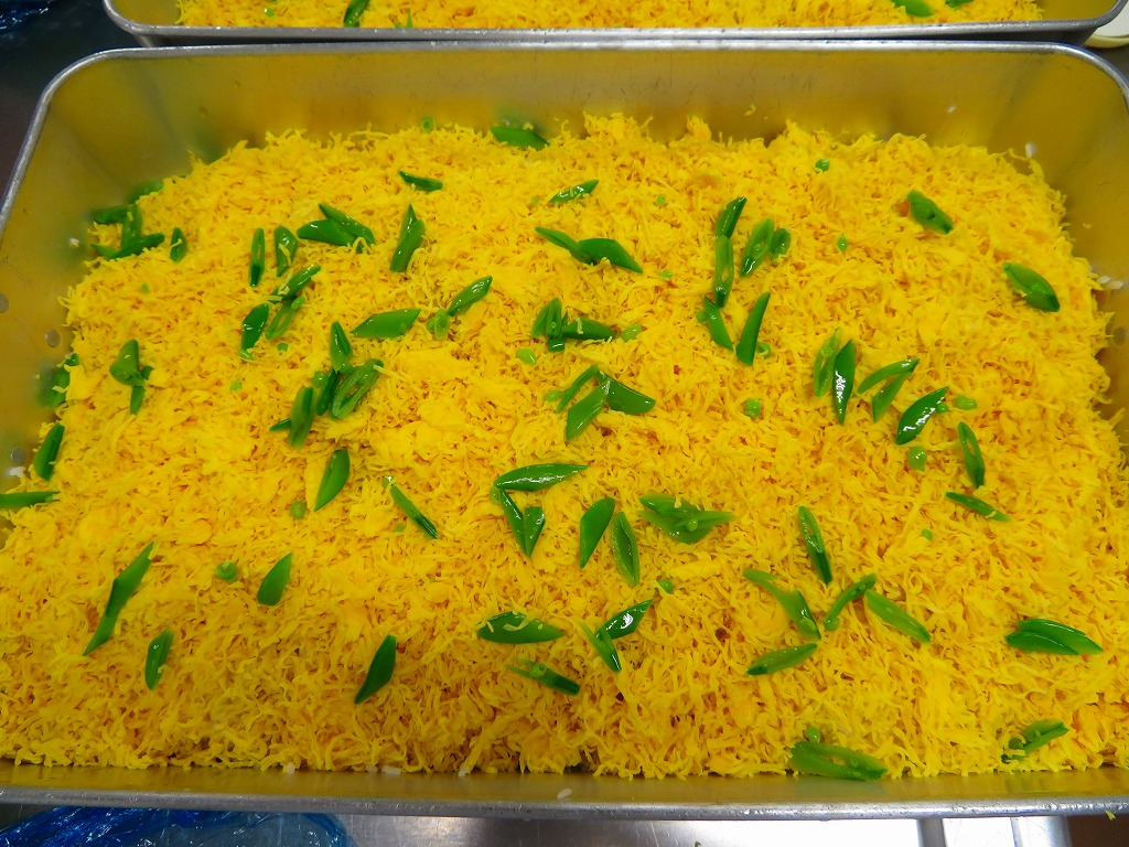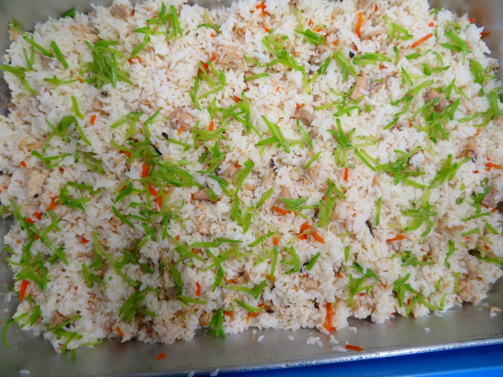 五目ごはんは彩りもきれいにできました。いつもより多いかな?と