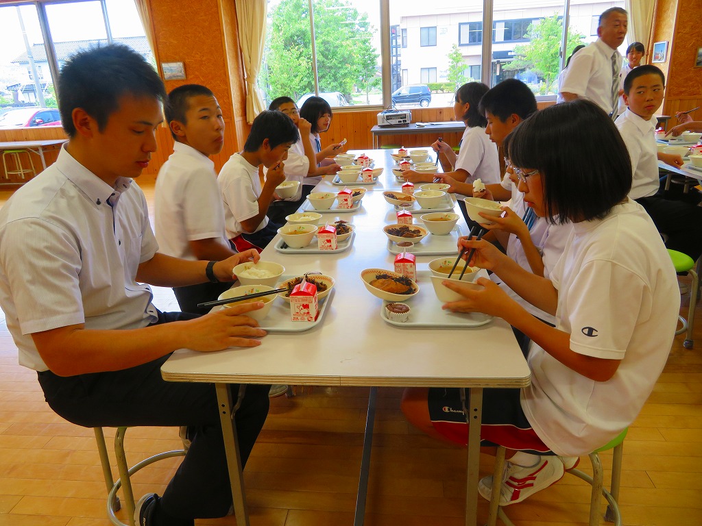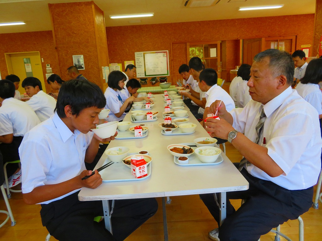 普段は学年別に給食を食べているのですが、今日は生活学習・給食委員会の
