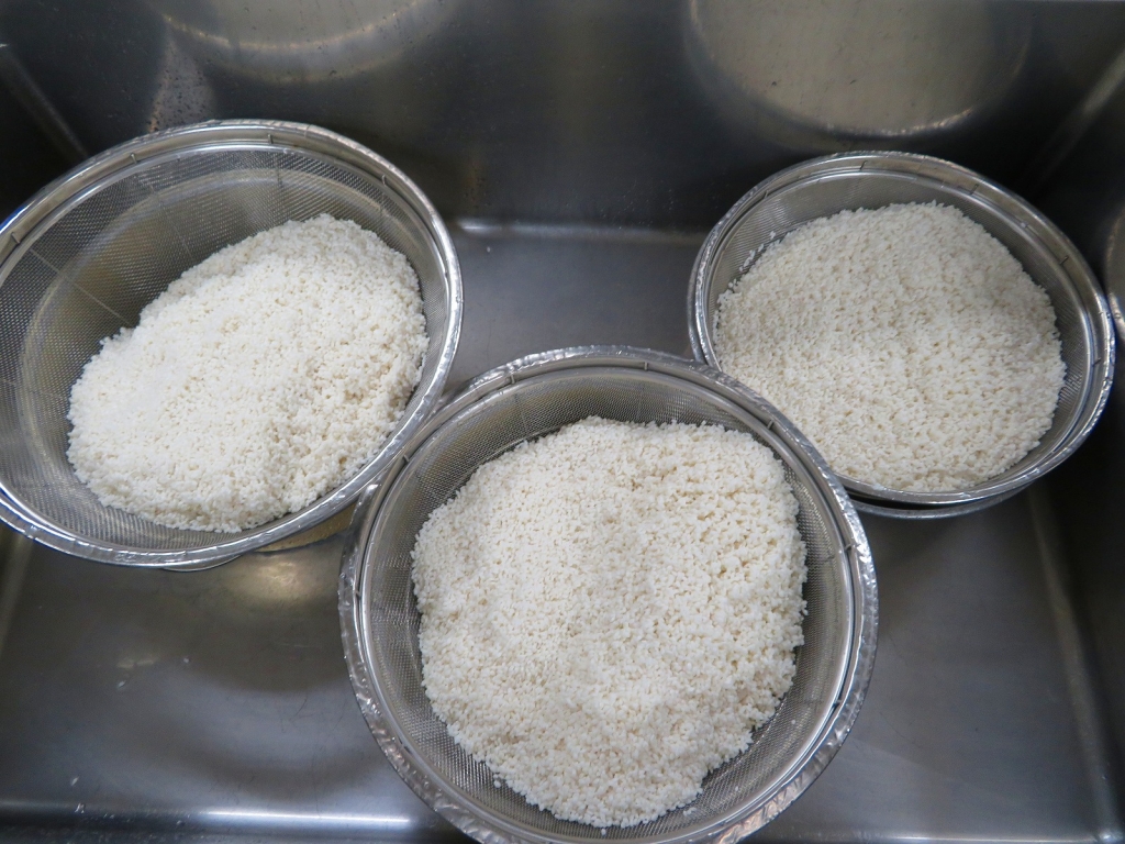 もち米に具をのせ、スチームコンベクションオーブンという普段は焼き物を
