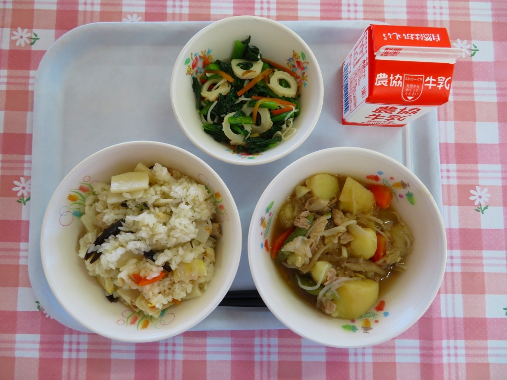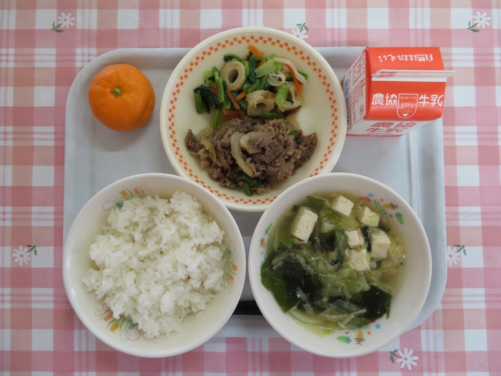 を変えて給食に登場しています。今日は、キムチを加えてピリ辛炒めに