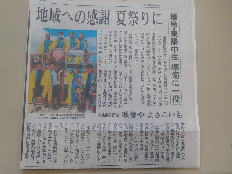 盛大に催されました。生徒たちは、準備・キリコ渡御・よさこい・スクリーン映像