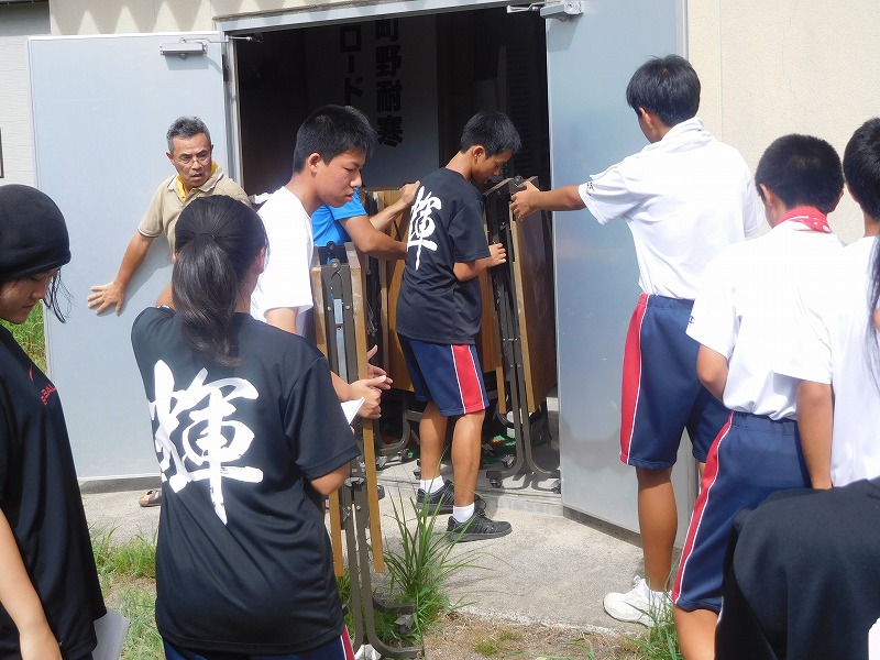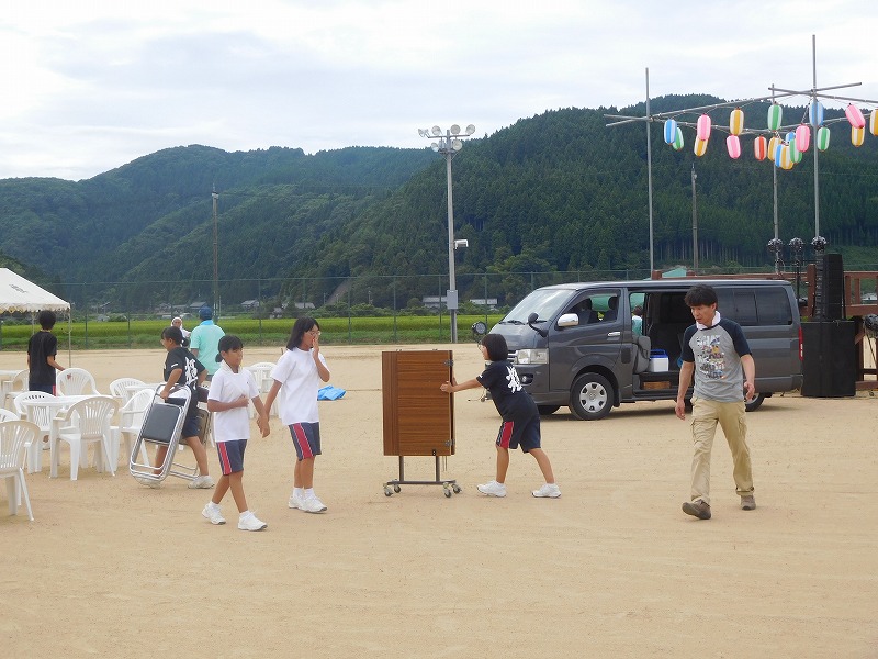 8月15日の「ふるさと五千人の祭典」を盛り上げるため、本校生徒が準備に