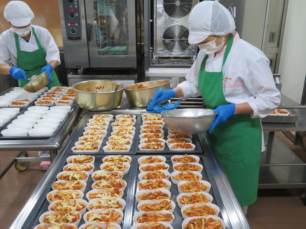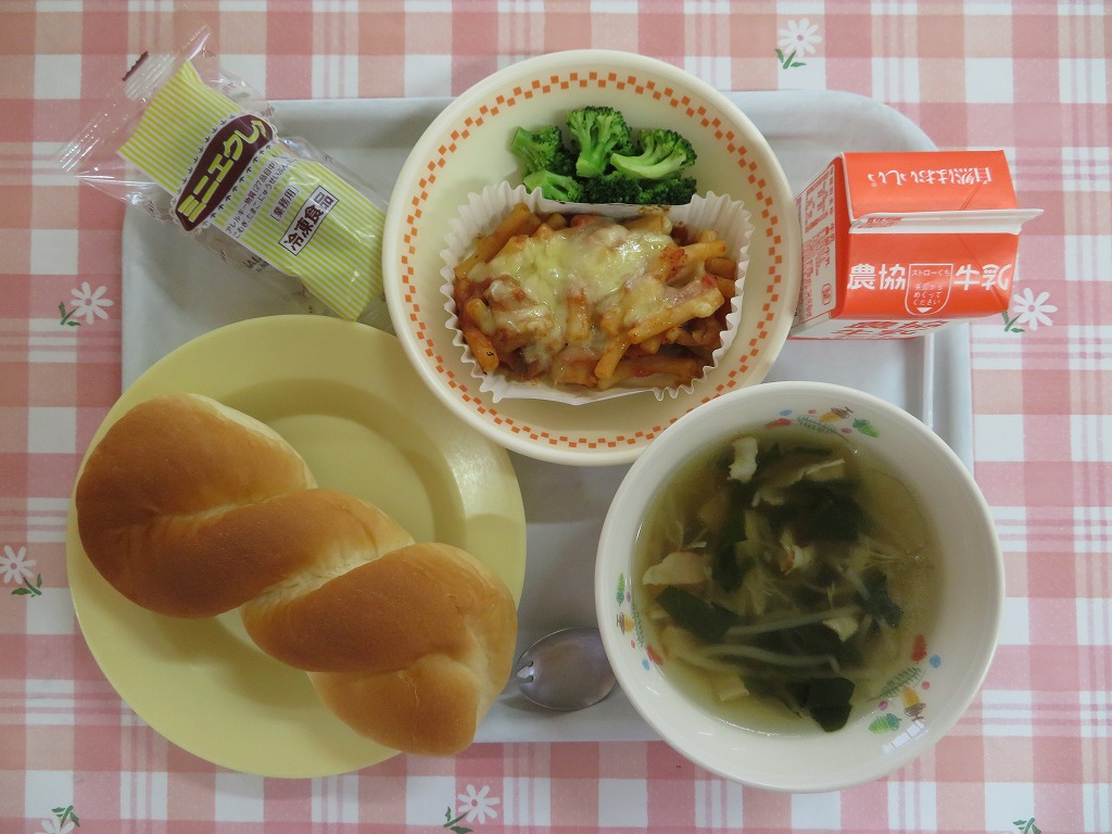 グラタンも給食の定番ですが、今回はトマトソースのグラタンを作