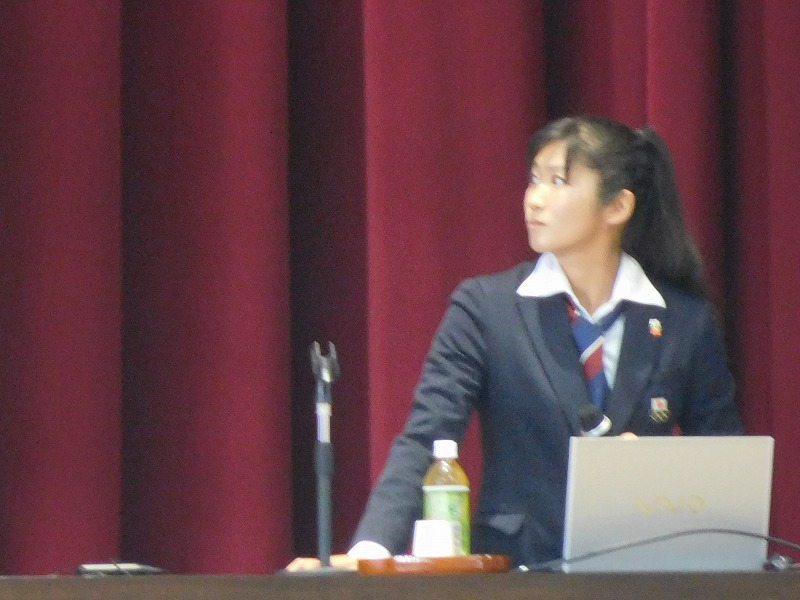 最後に各学校代表より花束贈呈があり、本校からは生徒会副会長の谷さんが
