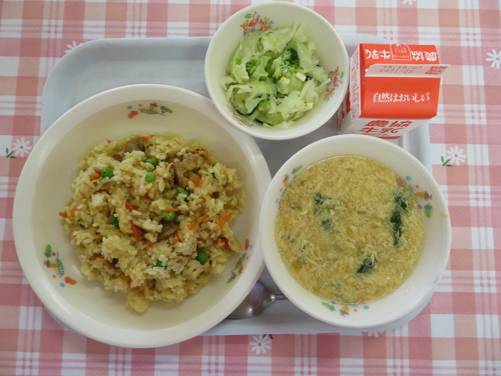 そぼろごはんは、カレー粉を入れているので、スパイシーな味付けで