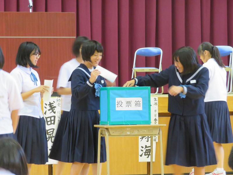 後期生徒会役員立会演説会・投票 投稿日時 : 2018/09/25 東陽中職員 25日(火)の6限目に後期生徒会役員の立会演説会及び投票が行われました。立候補者・推薦者は堂々と自分の抱負や考えを話していました。 Tweet {{options.likeCount}} {{options.likeCount}} 0 コメント