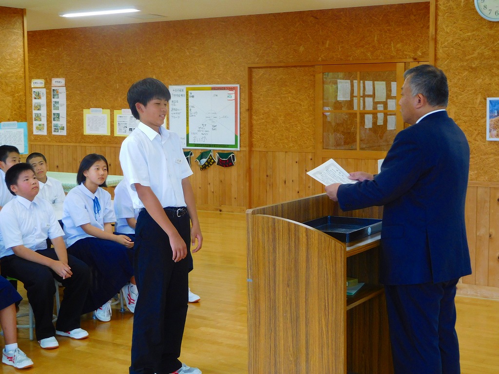 1学期終業式&表彰式 投稿日時 : 2019/07/19 東陽中職員 7月19日(金)、1学期末テスト優秀賞と努力賞の表彰を行いました。また、終業式では学校長から「1学期の振り返り」、生徒指導からは「夏休みの過ごし方や安全面」の話がありました。規則正しい生活を送り、計画を立てて、充実した夏休みを送ってください。 Tweet {{options.likeCount}} {{options.likeCount}} 0 コメント