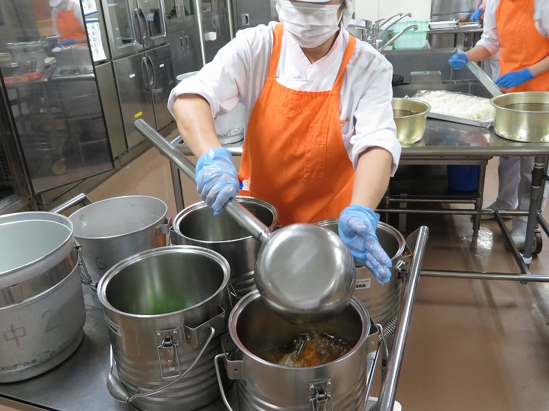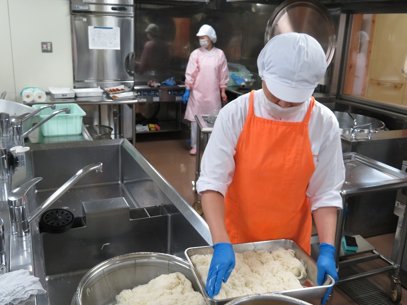 そうめんも当番が配りやすいように、調理員さんが一人分ずつ丸めてくれました。