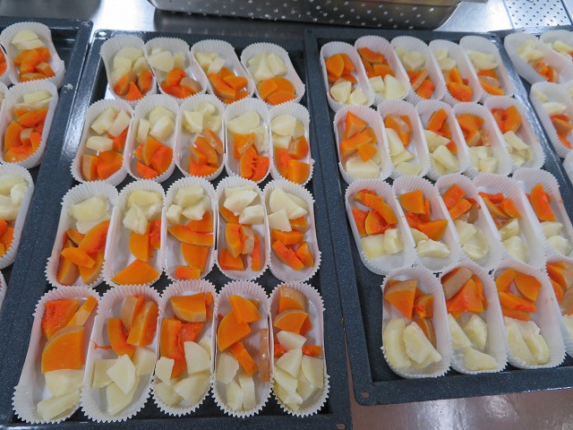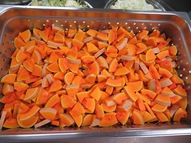 今日の給食は、町野でとれた「バターナッツかぼちゃ」を使用して、