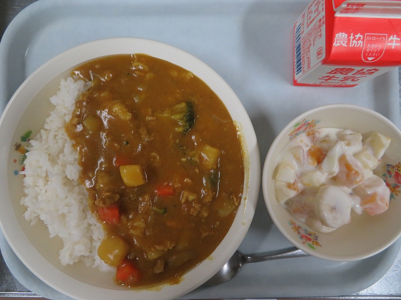 今年最初の給食はみんな大好きなカレーライスにしました。