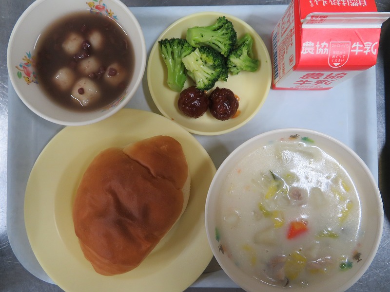 給食でも白玉ぜんざいを出しました。