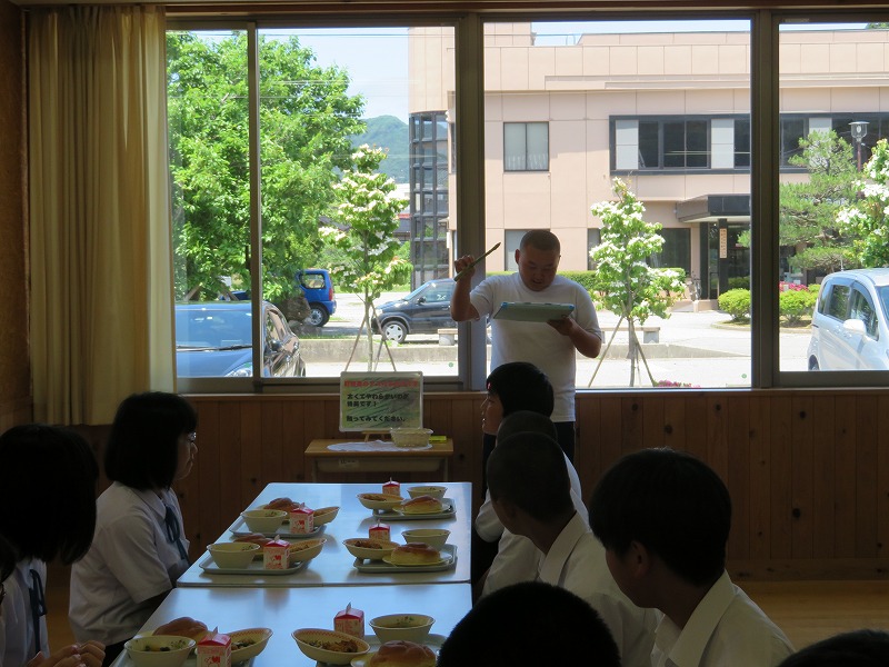 給食を食べた後、給食についての説明をさせていただきました。