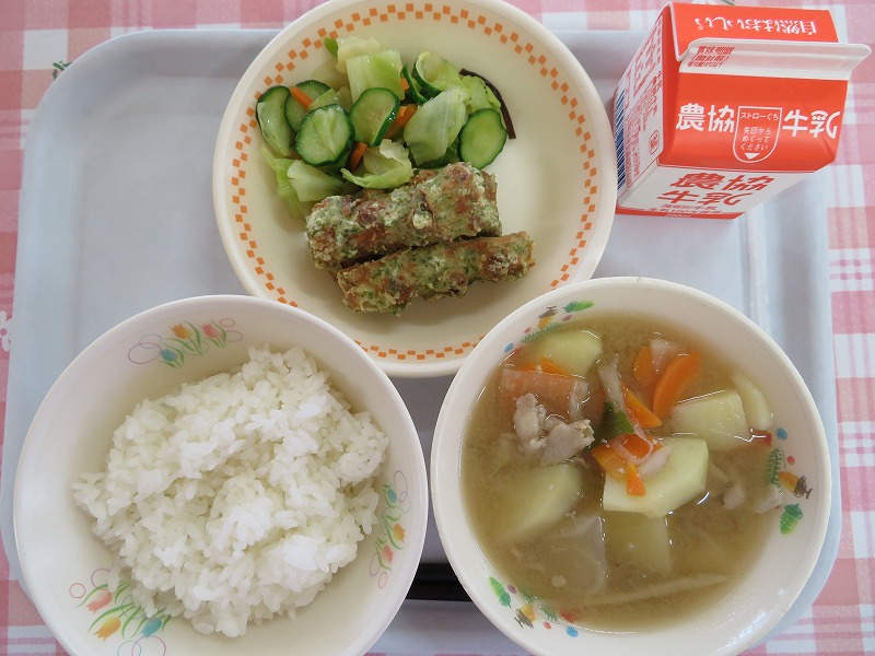 今日はちくわのいそべ揚げが3本ついて、喜んでいる生徒が