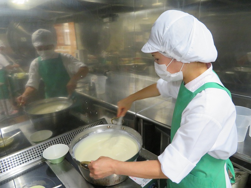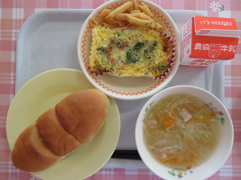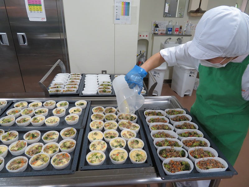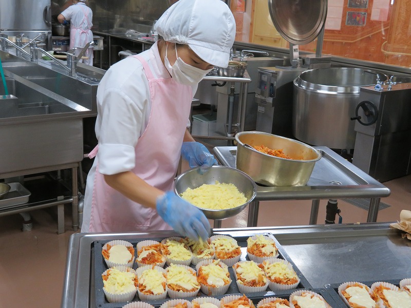 焼きます。中学校は短縮授業だったため、できたてのカップエッグを