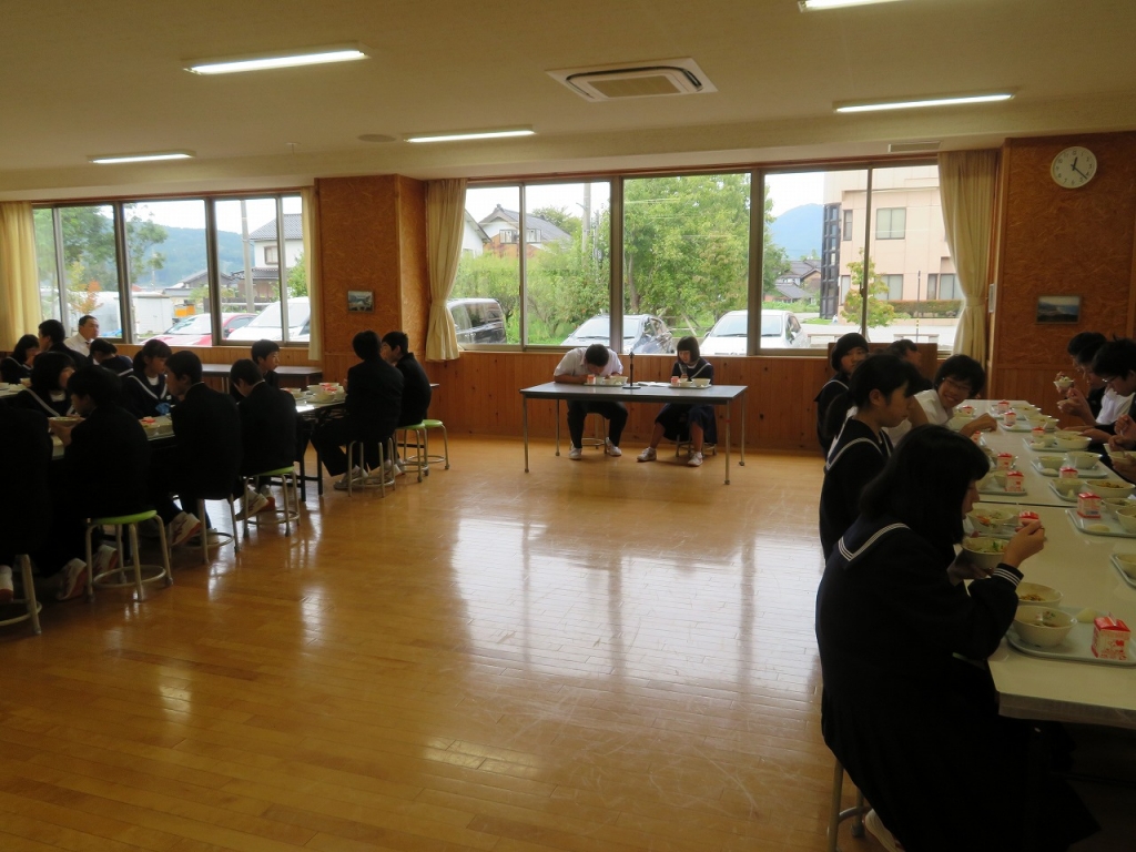 給食当番の生徒は、皿から出るほど大きなさんまに驚いていました。