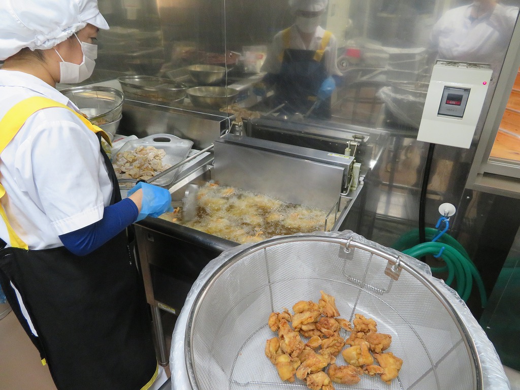 給食では、唐揚げは米粉で揚げることが多いです。