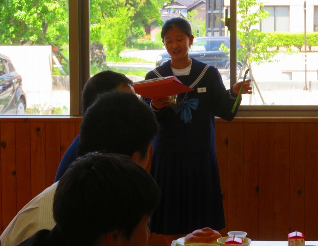 給食委員会の生徒に給食紹介をしてもらいました。