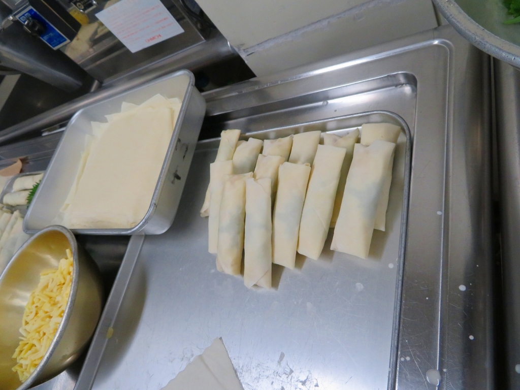 3人がかりで時に励まし合いながら春巻きを作りました。カリっとおいしく